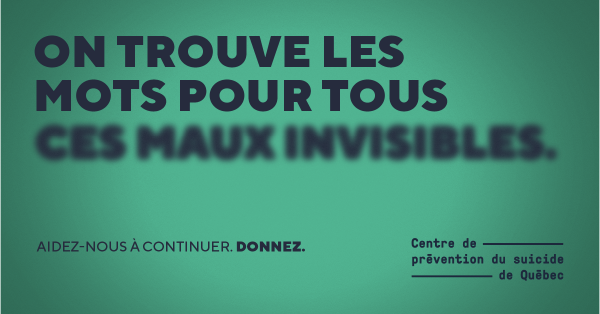 Au Centre de prévention du suicide de Québec (CPSQ), on trouve les bons mots pour apaiser ces maux qui sont invisibles.